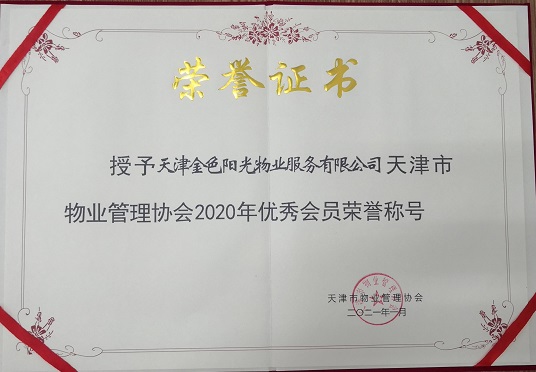 天津金色陽光物業(yè)服務(wù)有限公司榮獲天津市物業(yè)管理協(xié)會2020年度優(yōu)秀會員單位榮譽稱號