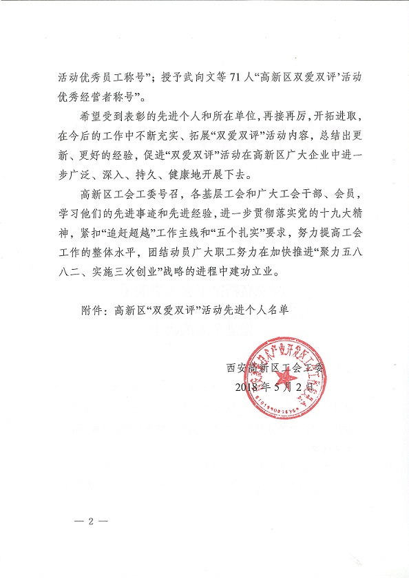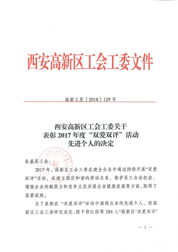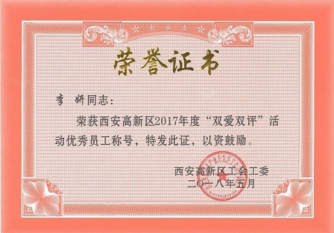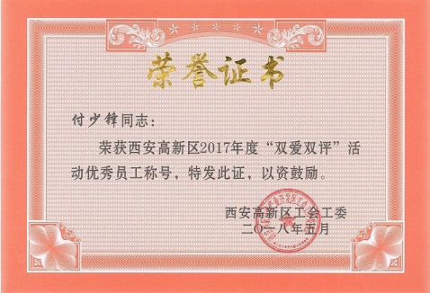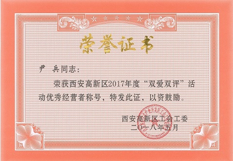 熱烈祝賀2017年“雙愛雙評”活動雷澍、尹兵同志被評為“優(yōu)秀經(jīng)營者”;劉莉、李妍、王雷、付少鋒被評為“優(yōu)秀企業(yè)員工”