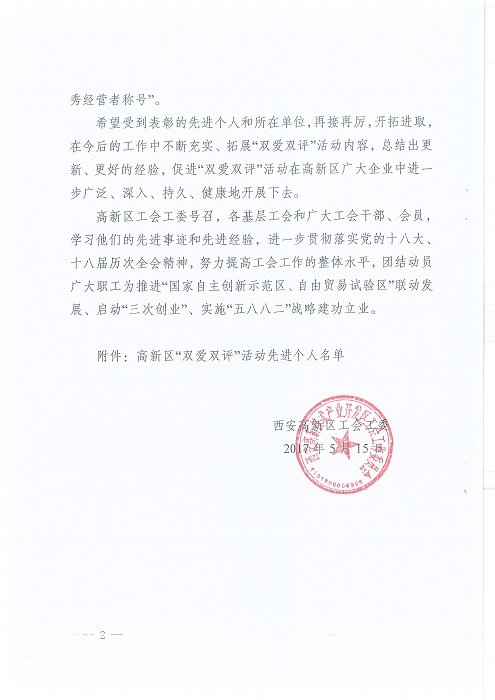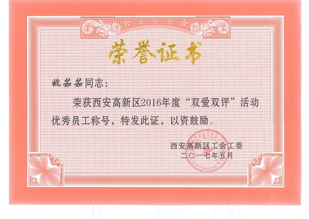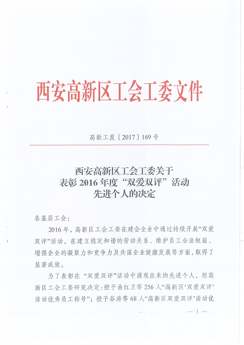熱烈祝賀2016年“雙愛(ài)雙評(píng)”活動(dòng)西安裕昌總經(jīng)理梁中錄、物業(yè)項(xiàng)目經(jīng)理史阿維被評(píng)為“優(yōu)秀經(jīng)營(yíng)者”;劉妍、姚茹茹被評(píng)為“優(yōu)秀企業(yè)員工”
