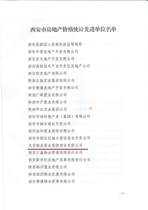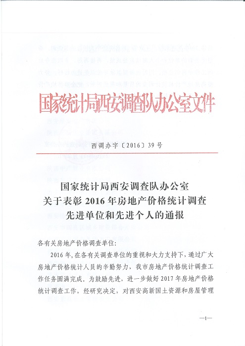 熱烈祝賀西安裕昌被評為2016年房地產(chǎn)價格統(tǒng)計調(diào)查先進單位