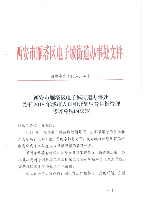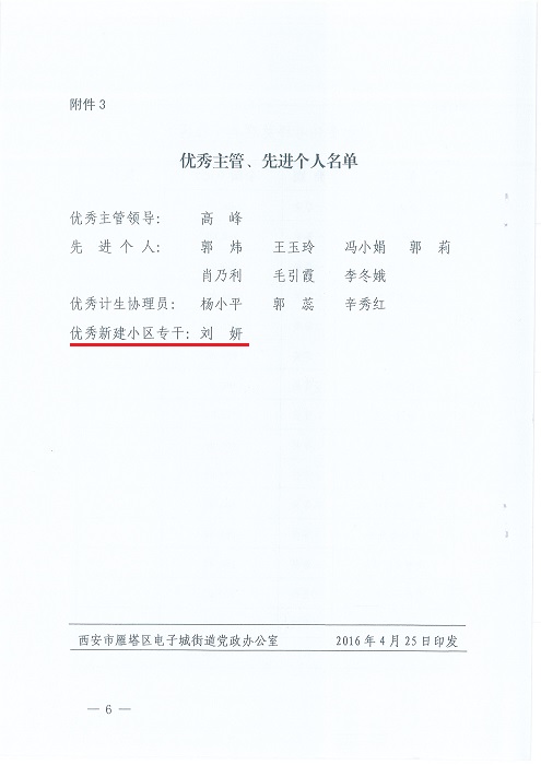 熱烈祝賀西安物業(yè)劉妍同志被評(píng)為2015年城市人口和計(jì)劃生育目標(biāo)管理“優(yōu)秀新建小區(qū)專干”