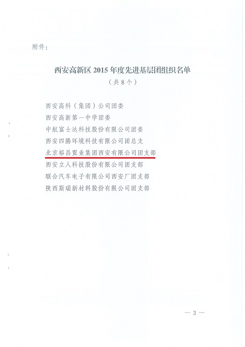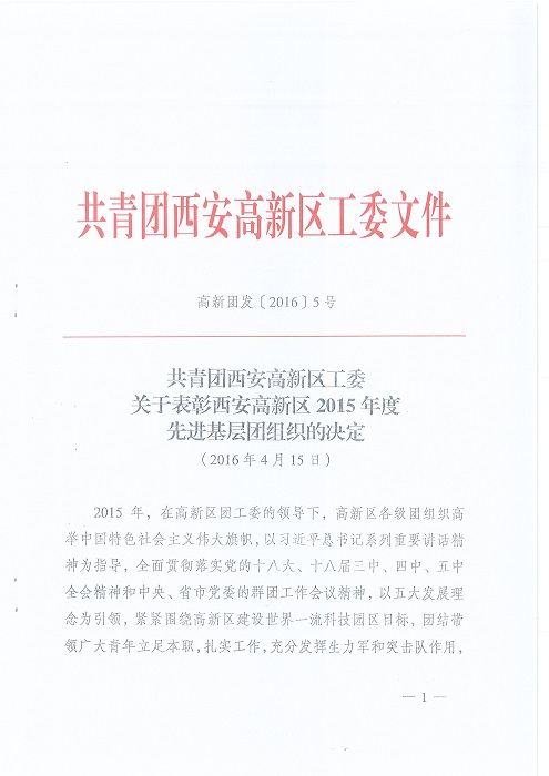 熱烈祝賀我司團支部被評為西安高新區(qū)2015年度“先進基層團組織”