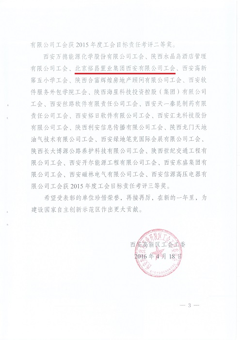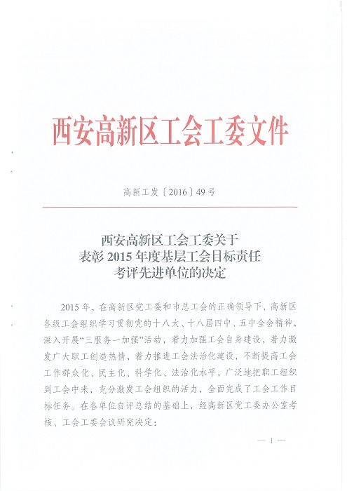 熱烈祝賀我司工會(huì)榮獲2015年度工會(huì)目標(biāo)責(zé)任考評(píng)三等獎(jiǎng)