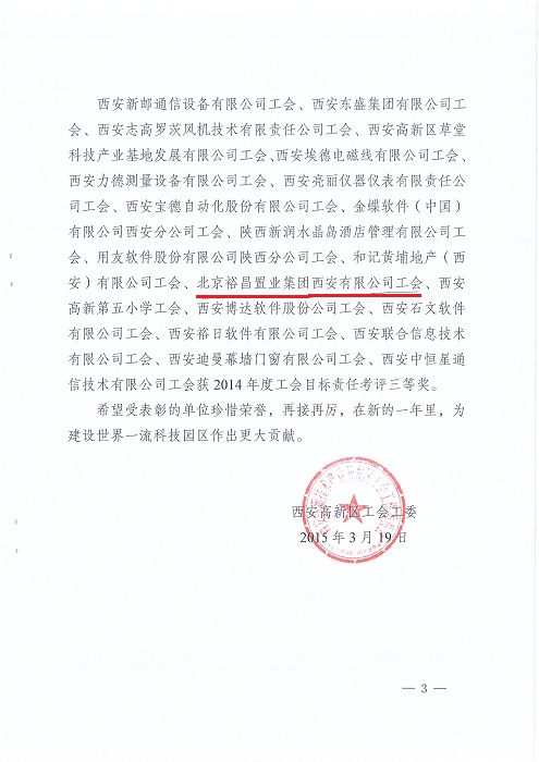 熱烈祝賀我司工會(huì)榮獲2014年度工會(huì)工作目標(biāo)考評(píng)三等獎(jiǎng)