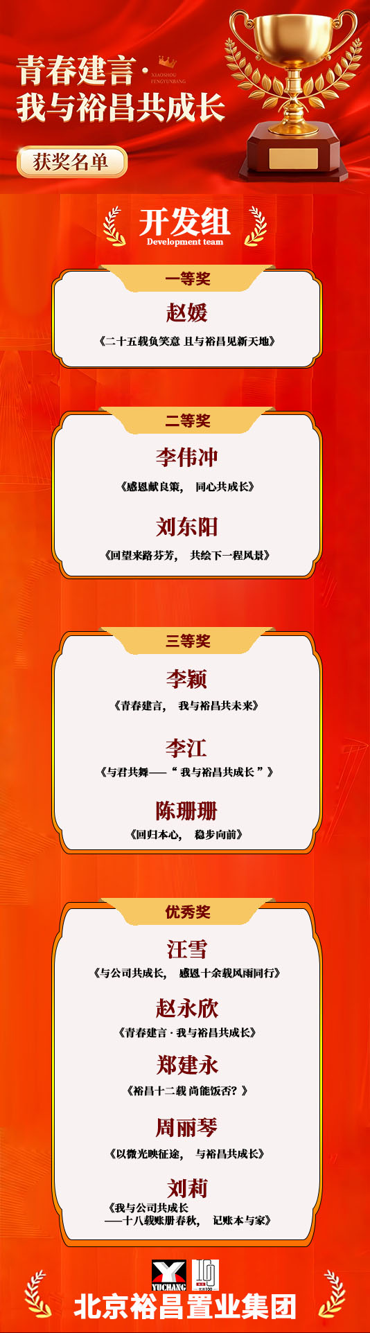 ? ? ? ? 2025年11月21日,為激發(fā)全體員工的主人翁精神和創(chuàng)新思維,鼓勵員工立足崗位、積極建言,共同推動公司高質(zhì)量發(fā)展,北京裕昌置業(yè)集團(tuán)舉辦“青春建言·我與裕昌共成長”征文活動。