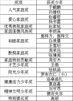 獲獎(jiǎng)家庭、少年名單